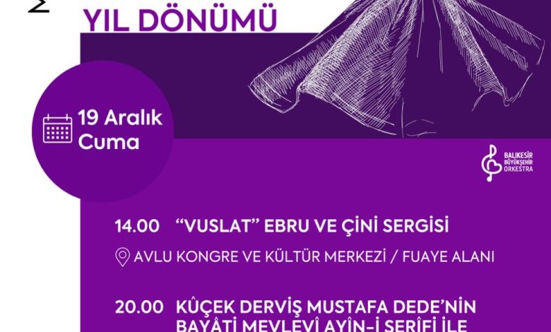 Devamını Oku »Balıkesir Büyükşehir Belediyesi tarafından Hz. Mevlana’nın 752. Vuslat yıl dönümü nedeniyle 19 Aralık Cuma günü “Vuslat” Ebru ve Çini Sergisi…