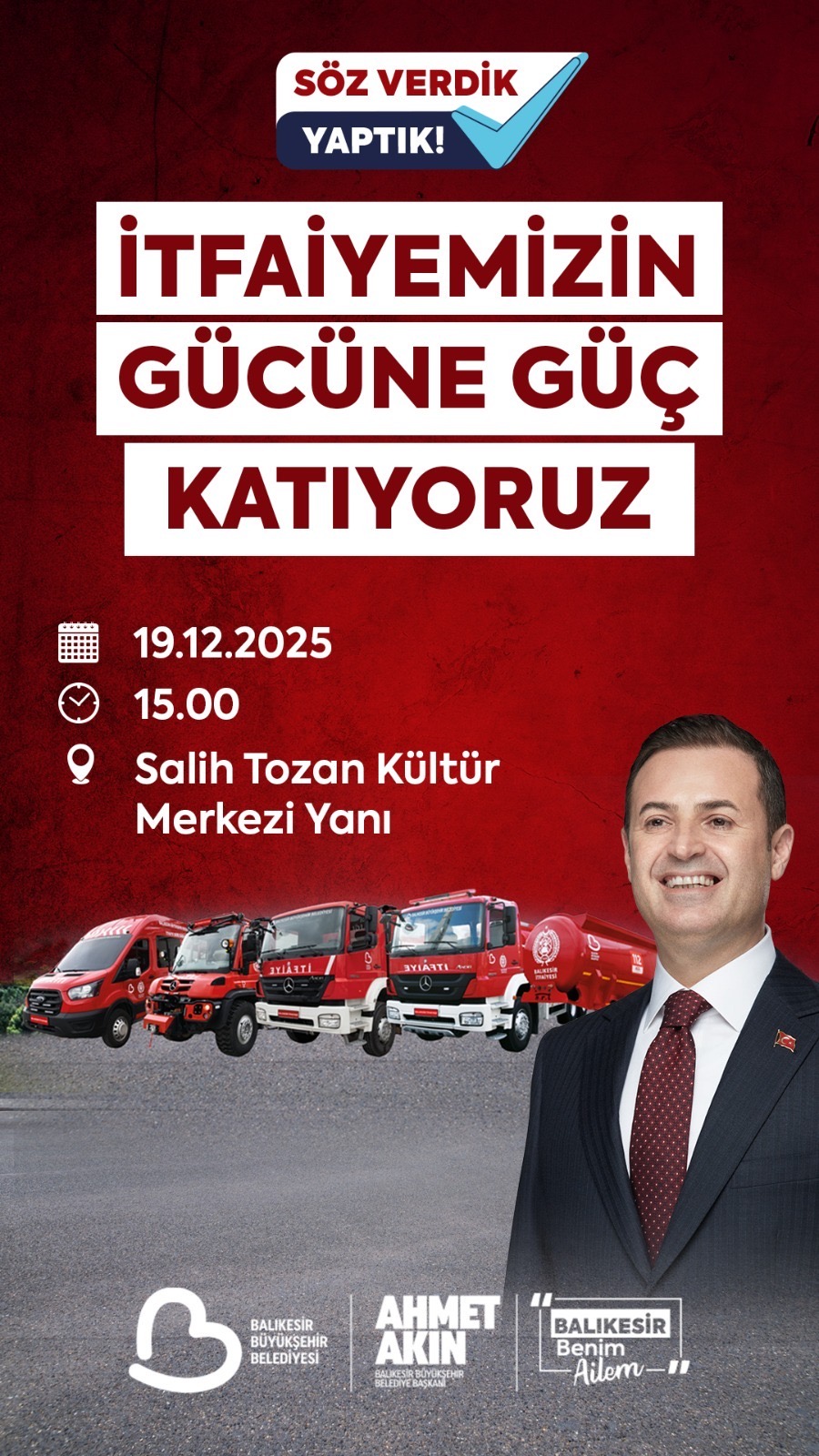 Araçların hizmete girişine ilişkin tören, 19 Aralık Cuma günü saat 15.00’te Salih Tozan Kültür Merkezi yanında düzenlenecek. Balıkesir Büyükşehir Belediyesi yönetimi, itfaiyeyi güçlendirme politikasının yalnızca araç yatırımı değil, afet yönetimi, yangın güvenliği, arama-kurtarma kapasitesinin artırılması, kırsal yangınlara hızlı müdahale ve teknik personel eğitimlerinin genişletilmesi anlamına geldiğini vurguluyor.